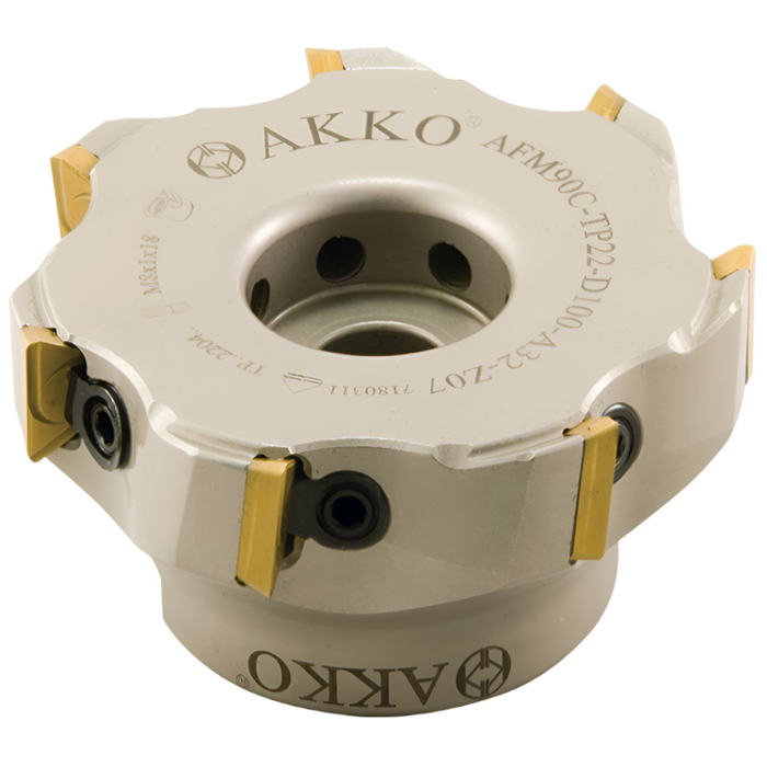 AFM90C-TP22-D250-C60-Z15using ISO TPMT 1603.. The Akko facemill Screw Torx Clamp AFM90 is a precision-engineered tool designed for high-performance milling applications. Featuring a 90° shoulder mill design, this facemill clamp is specifically crafted to enhance the stability and accuracy of your machining processes.
