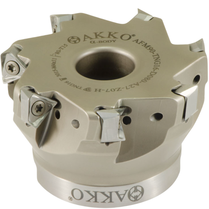 using PRAMET TNG10 The Akko facemill Screw Torx Clamp AFM90 is a precision-engineered tool designed for high-performance milling applications. Featuring a 90° shoulder mill design, this facemill clamp is specifically crafted to enhance the stability and accuracy of your machining processes.